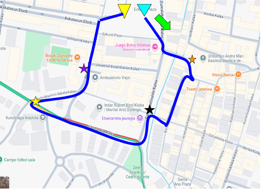 Joan zaitez Zumalakarregi kalera. Joan zaitez Juego Bolos ostatura. Bertan, biratu ezkerrera. Egin aurrera Andra Mari elizararte.
